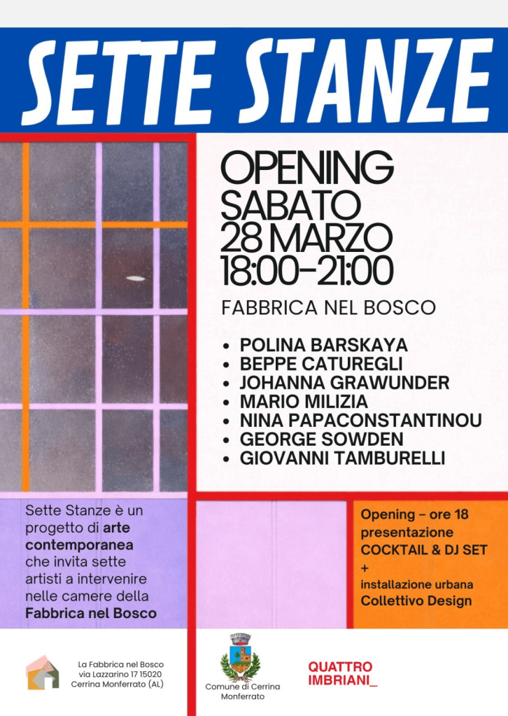 SETTE STANZE – Opening Sabato 28 marzo 18:00-21:00 La Fabbrica nel Bosco – Via Lazzarino 17 – Cerrina Monferrato (AL)